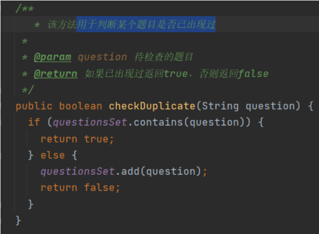 checkDuplicate函数:通过HashSet,用于判断某个题目是否已出现过