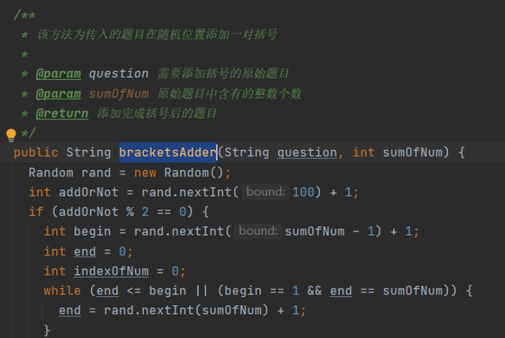 bracketsAdder函数:在生成好的式子里面随即加入一对括号的操作