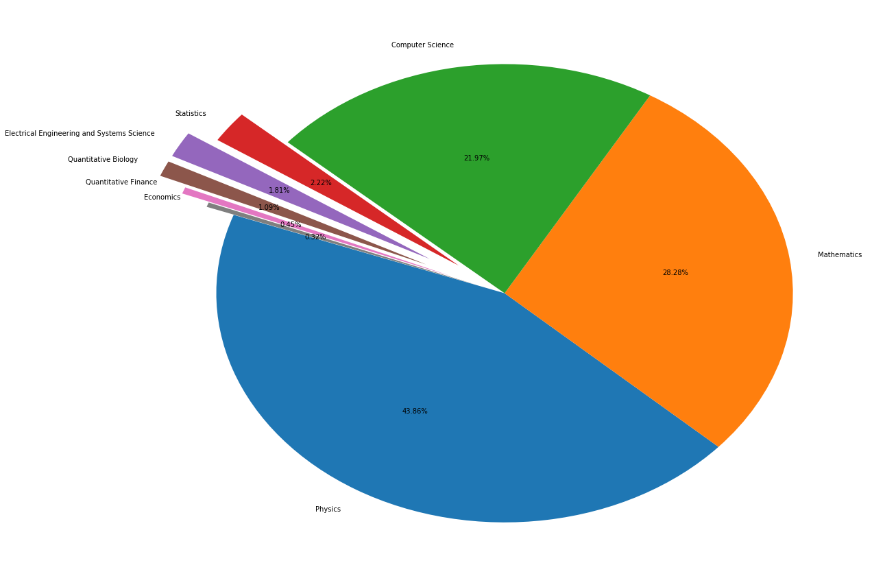 plt.pie(_df['id'], labels=_df['group_name'], autopct='%1.2f%%', startangle=160,explode=explode)