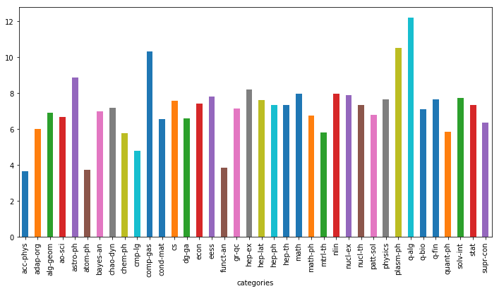 data.groupby(['categories'])['pages'].mean().plot(kind='bar')