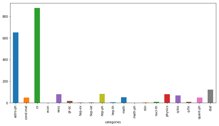 data_with_code.groupby(['categories'])['code_flag'].count().plot(kind='bar')