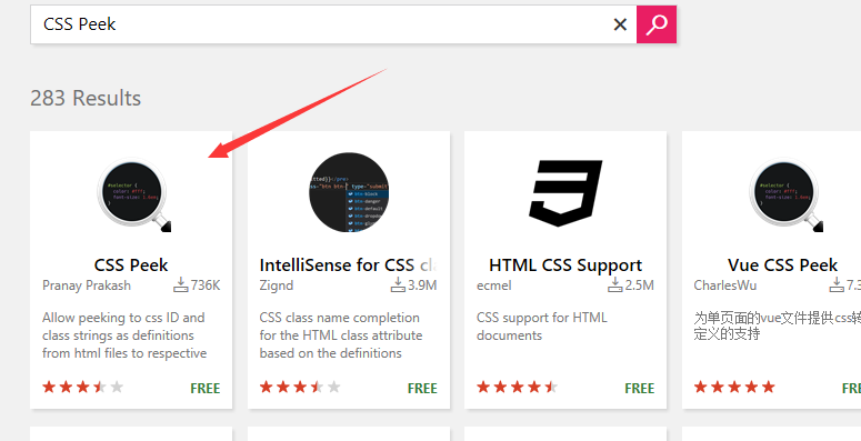 输入css peek搜,如图: