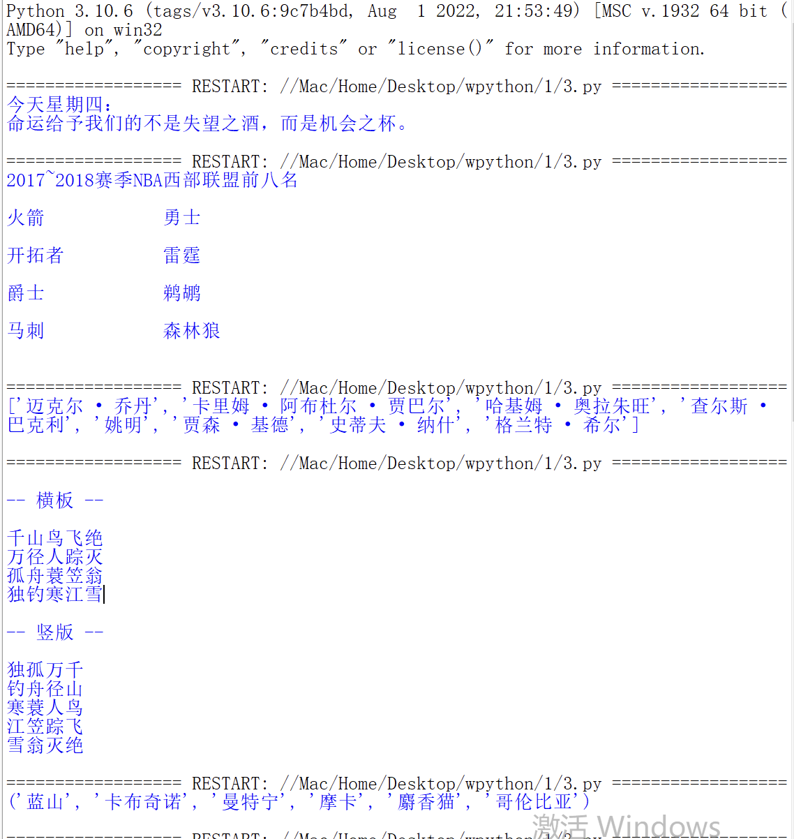 team = ["火箭","勇士","开拓者","雷霆","爵士","鹈鹕","马刺","森林狼"]