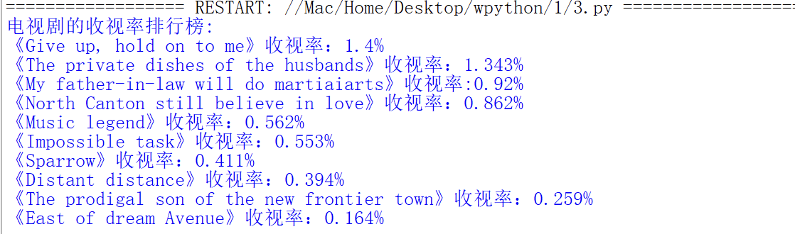 TV = [("《Give up, hold on to me》收视率:","1.4%"),