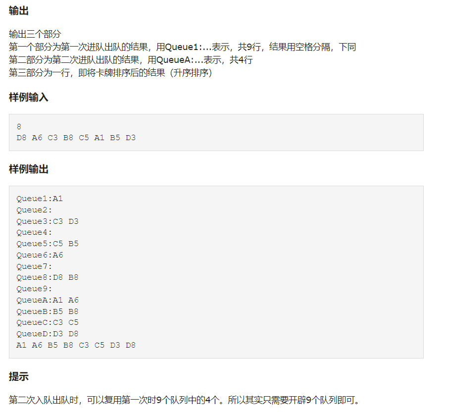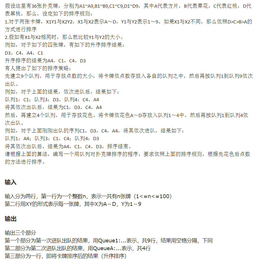 0305:用队列对扑克牌排序