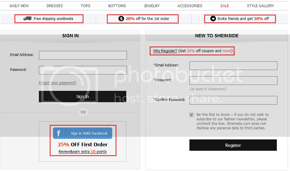 使用FB登录首单25%Off,且评论后再送10点积分;