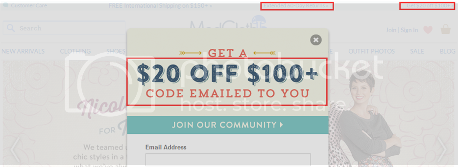以优惠券的形式引导访客注册或订阅邮件,邀请好友形成扩散效应