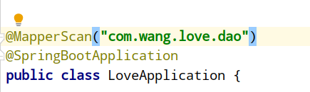 在主类上添加 扫描注解 ,与dao层一样的包名