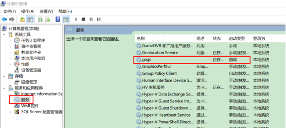 去我的电脑-管理-服务-找到gogs,右击启动