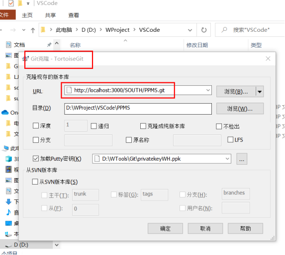 URL用ssh的链接需要勾选加载Putty密钥。
