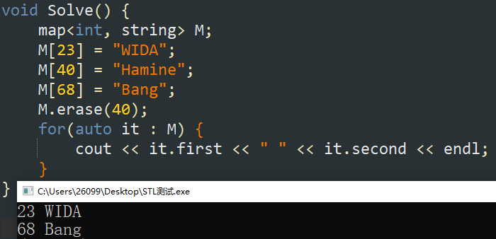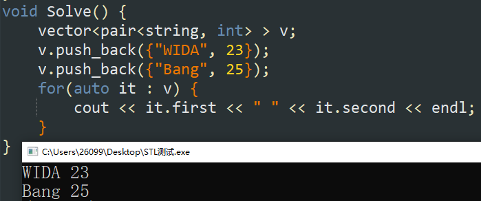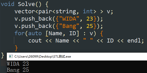 \(\tt{}pair\) 中只有两个元素,分别是 \(\tt{}first\) 和 \(\tt{}second\) ,只需要按照正常读取结构体的方式读取即可。