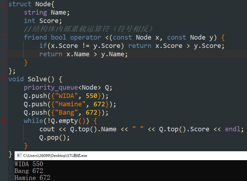 与普通队列 \(queue\) 不同的是, \(priority\_queue\) 是有序的,元素放入后会按照优先度(默认升序)进行排序。内置的 \(int\),\(string\) 类型本身就可以比较大小,若要使用自定义的结构体类型,则需要重载运算符 “<”。