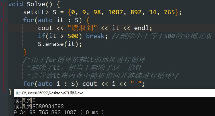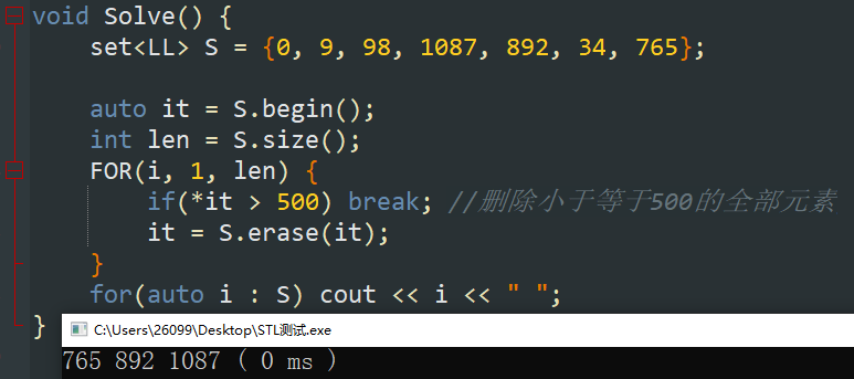可以将 \(unique\) 函数和 \(earse\) 函数相结合,达到完全删去重复元素的目的,如下方代码