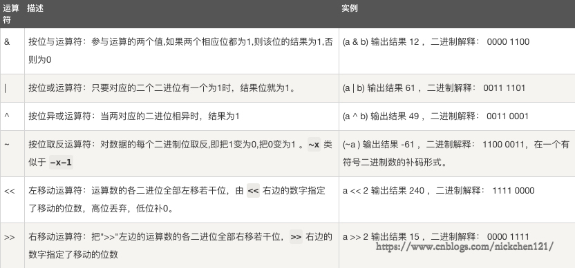 按位运算符是把数字看作二进制来进行计算的