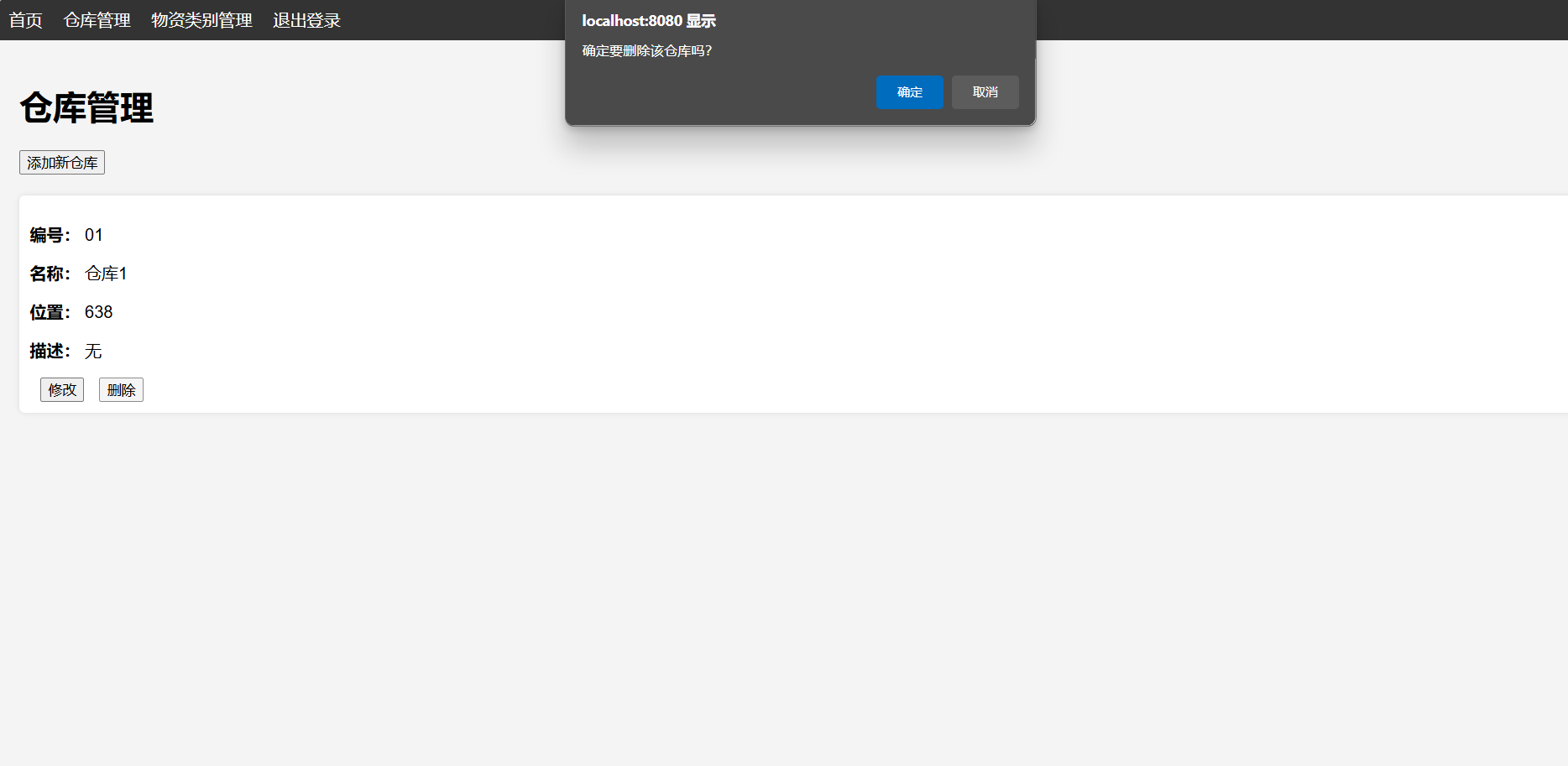 (2)删除仓库:删除仓库基本信息时,必须验证没有相关物资存储在该仓库中,提示用户不允许删除。