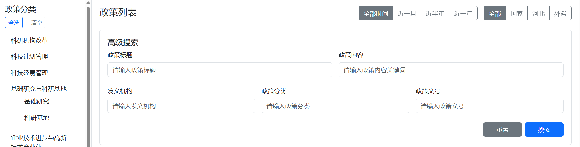 将之前做的树形分类过滤的页面中一筐式查询框改为了多条件查询,可以根据标题、分类、内容、文号等进行查询