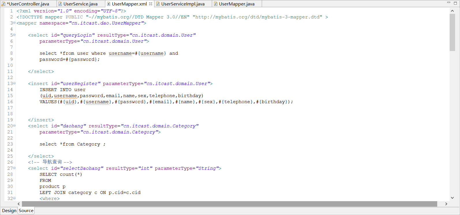 3.通过dao接口连接到conflg包下User.mapper.xml