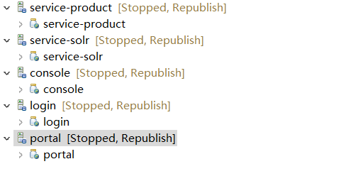 1.所需要的项目(service-product,login,service-solr,console,portal)五个