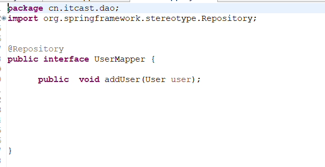 新建一个usermapper的接口(@Repository用于标注数据访问组件)