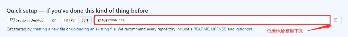 github主页左边找到之前创建的仓库进去把仓库地址复制下来