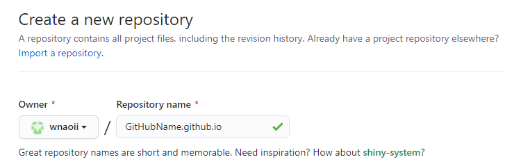 仓库名必须以 GitHub用户名+github.io 的格式填写