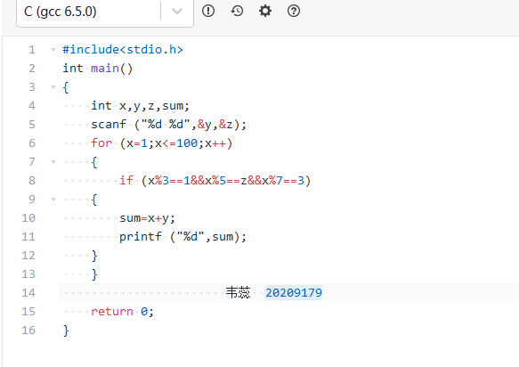 题目内容描述:妈妈给小明家新送来 y个鸡蛋。 已知小明家原有鸡蛋的个数x是满足“三个三个的数剩1个,5个5个数剩z个,7个7个数剩3个”的最小数, 请问小明家共有多少个鸡蛋? (设输入为正数,不考虑非法输入)