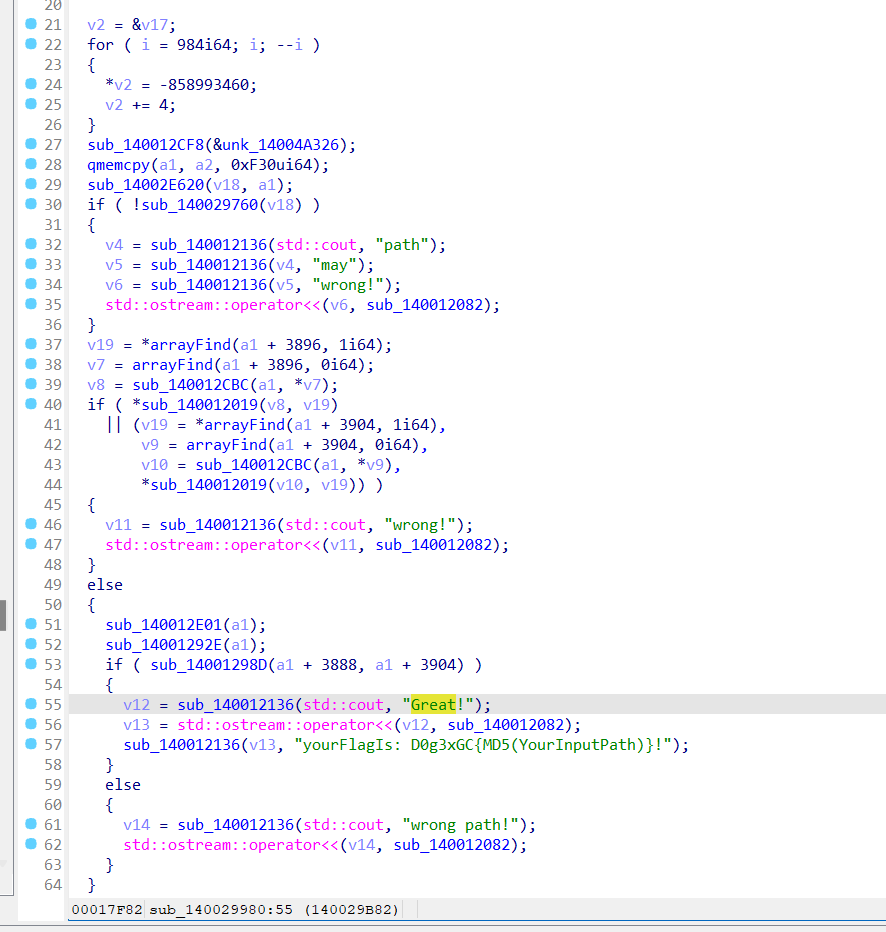 else if ( *sub_14001215E(a1 + 4096, i) == 'F' )