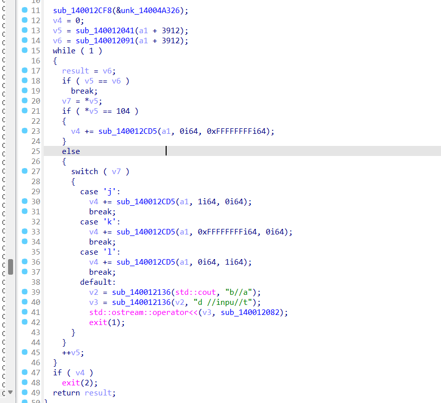 else if ( *sub_14001215E(a1 + 4096, i) == 'L' )