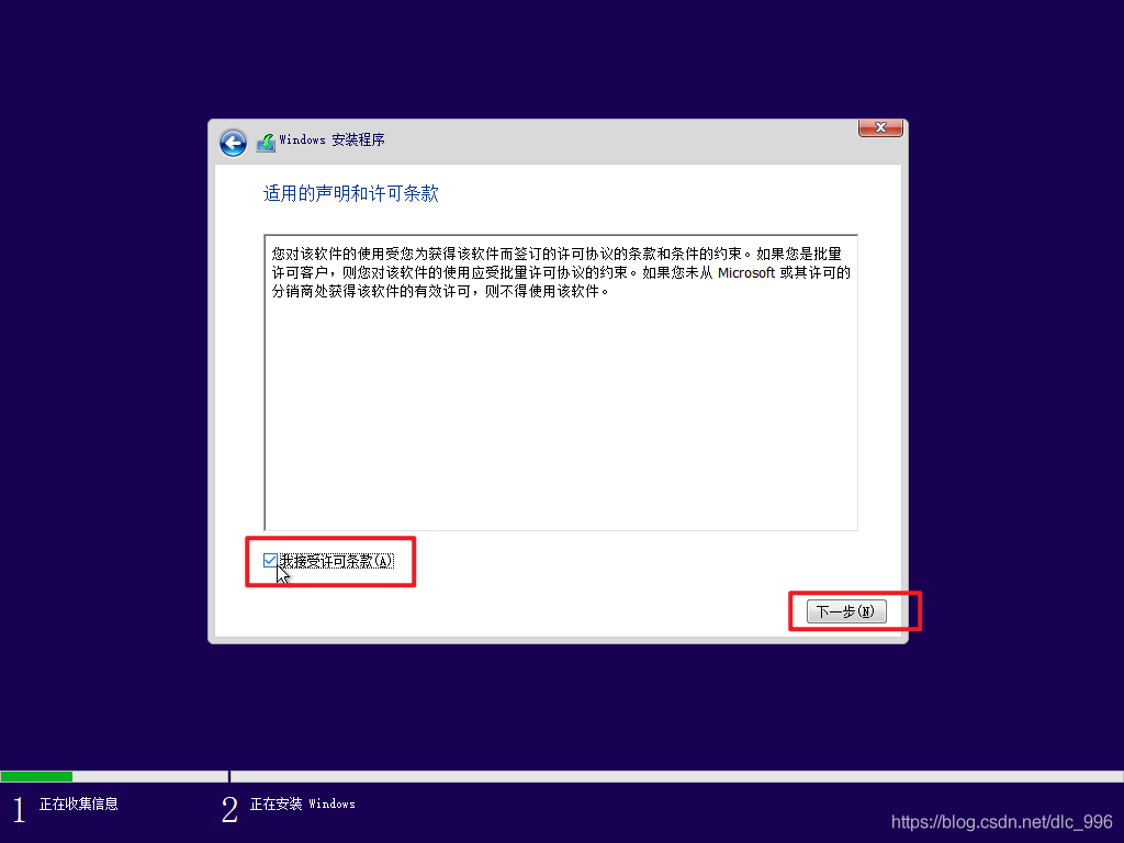接受条款 -- 》 选择下一步