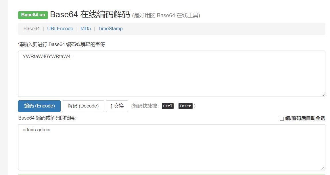 步骤三:将乱码YWRtaW46YWRtaW4= 使用base64进行解密