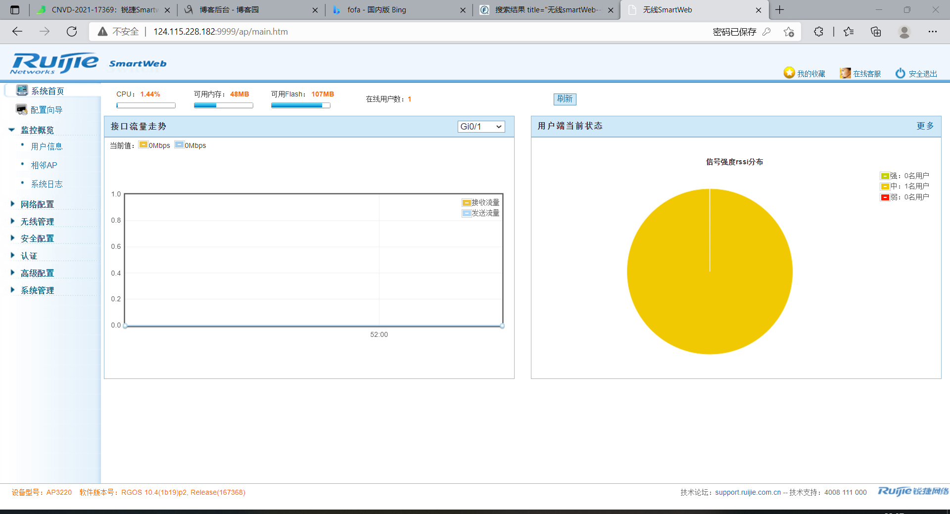 步骤一:FOFA搜索一下语句<title="无线smartWeb--登录页面">随便进入