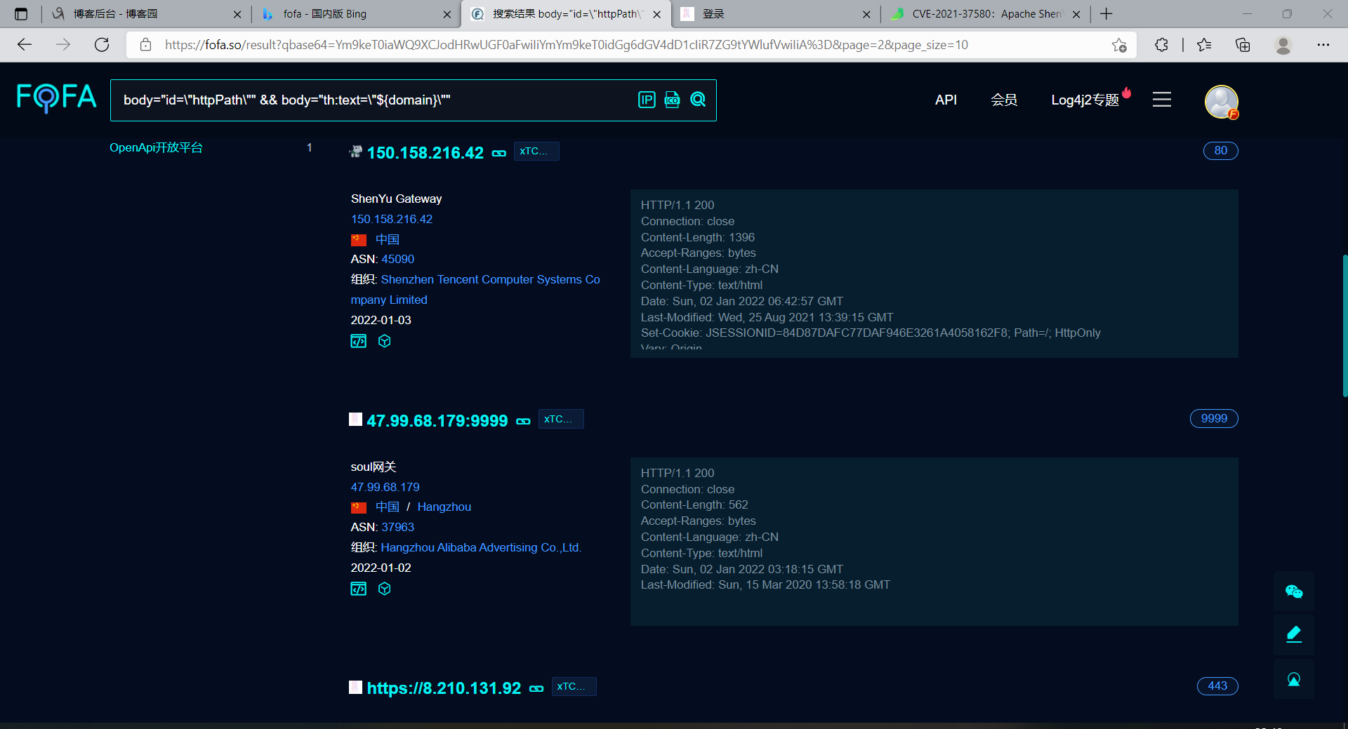 步骤一:使用Fof搜索一下语句...并随机打开几个页面进行测试,如下为成功的页面...