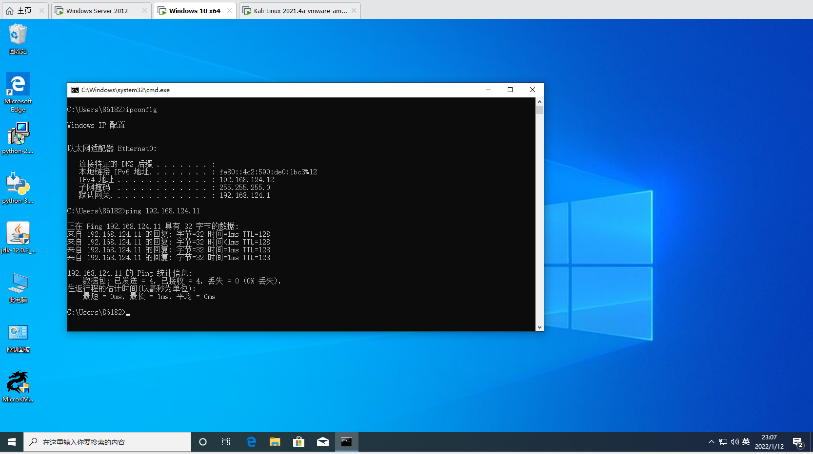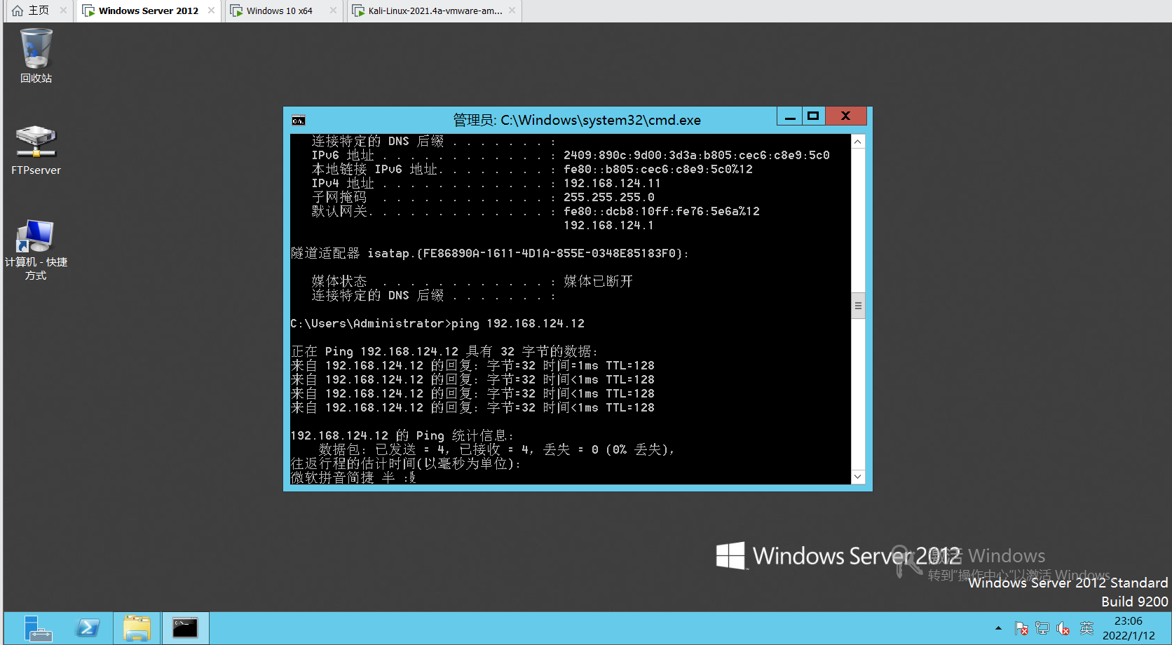 步骤二:windows server 2012、winowds 10 之内防火墙都处于关闭状态。并且相互ping通