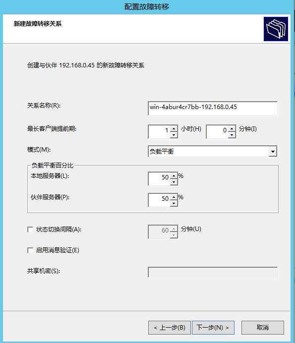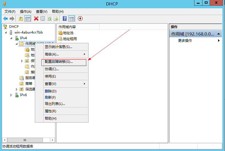 步骤二:在主服务器(windows server 2012)上打开DHCP的控制端并在作用域右键-->配置故障转移集群并填写相关信息...