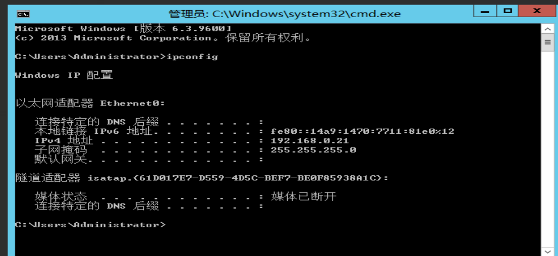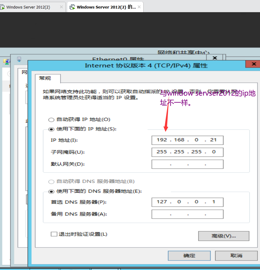 步骤三、修改Windows Server 2012的ipv4.并查询Windows Server 2012克隆的ip地址