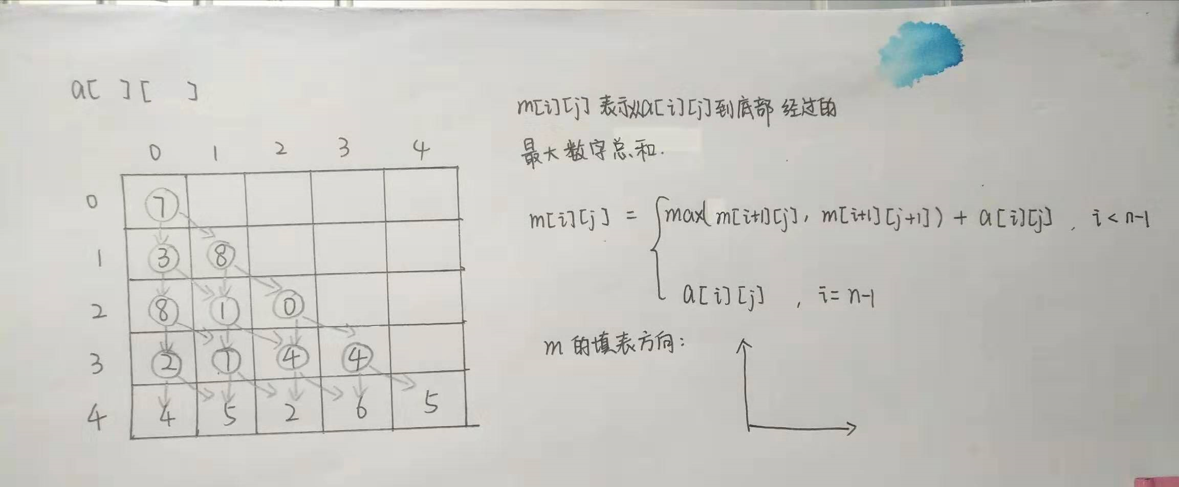 m[i][j] = Max(m[i+1][j], m[i+1][j+1]) + a[i][j];