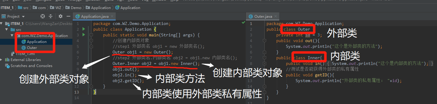step2: 外部类名.内部类名 obj2 = obj1.new 内部类名();