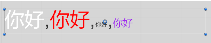 <color="#FFFFF">你好,<color="#FF0000">你好,<size=30>你好,<color="#A020F0"><size=50>你好