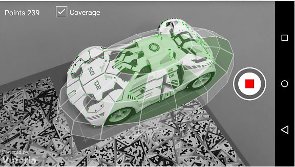 Vuforia对象扫描仪是一个Android应用程序,用于扫描物理3D对象。对象扫描器生成对象数据(* .OD)文件,其中包含在目标管理器中定义对象目标所需的源数据。扫描仪使您能够生成,测试和编辑.OD文件。它提供了对象特征的可视化以及它们在对象上的覆盖范围。