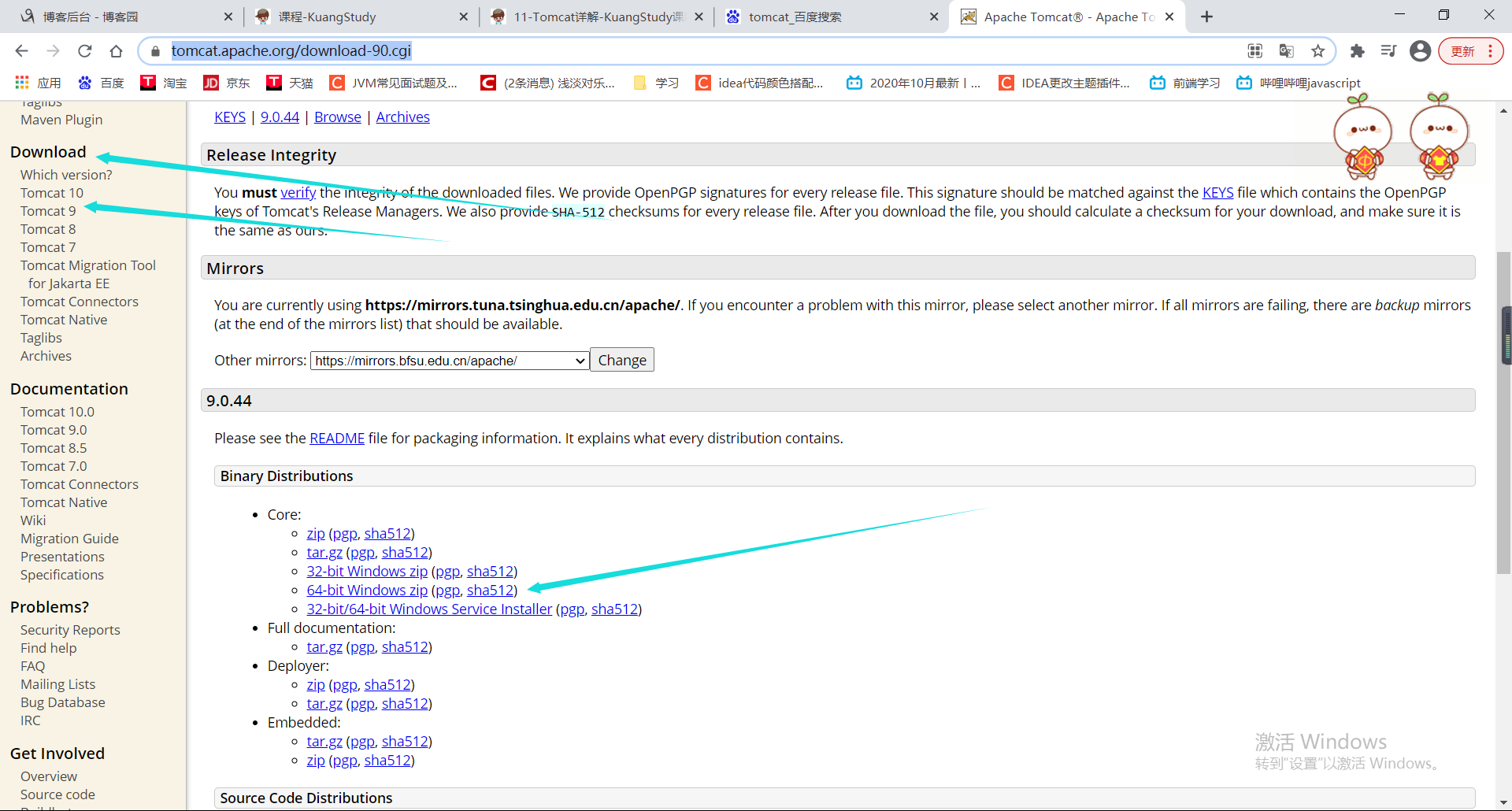 1.首先到tomcat官网找到download(https://tomcat.apache.org/download-90.cgi)