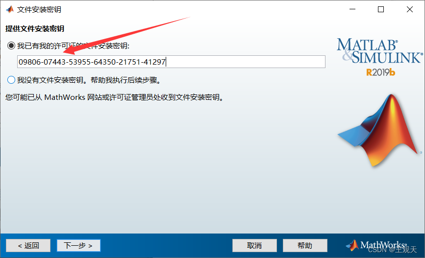 Ⅲ 选择“我已有我的许可证的文件安装密钥"