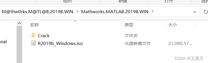 Crack文件夹下的文件和他的单词意思一样,R2019b_Windows.iso文件是安装镜像,请记住解压文件夹路径后面要用