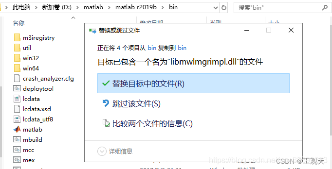 这时提示是否替换dll文件,选择“替换目标中的文件”