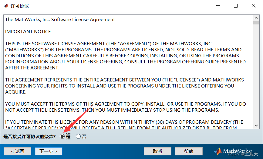 Ⅱ 选择“是”以同意许可协议,然后点击“下一步”进入下一步安装