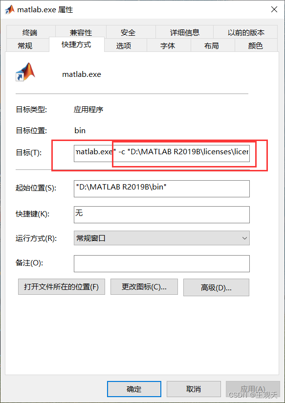 在 "目标" 里的 路径后面 加上 -c "前面Crack时复制的license_standalone.lic文件路径"