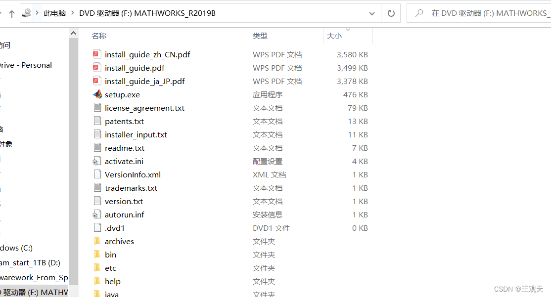 如上图文件夹,双击R2019b_Windows.iso镜像文件,系统会自动挂载到驱动器打开(如无法直接打开可解压)后文件夹内情况如下: