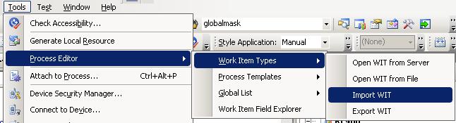 曾经手动修改了TFS中的工作项,也自鸣得意了一把,结果却发现微软已经提供了一个非常有用的工具:Visual Studio Team System 2008 Team Foundation Server Power Tools。将其安装后,就可以在VS2008中浏览各种工作项项目的定义,增加/修改工作项即项目流程模板。
