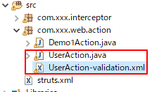 校验当前ActionClass中指定方法的格式:ActionClassName-ActionName-validation.xml,ActionName对应的是struts.xml文件对应的action标签的name属性的值
