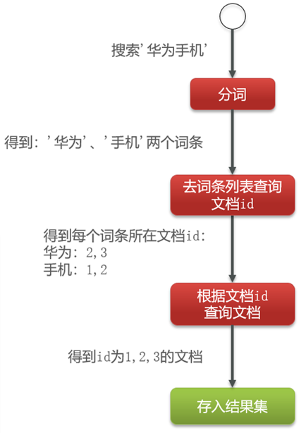 这种情况,获取华为手机的数据,通过分词获取华为和手机两个词条,根据词条去词条列表中获取文档Id,根据文档Id就能获取到对应的数据了。