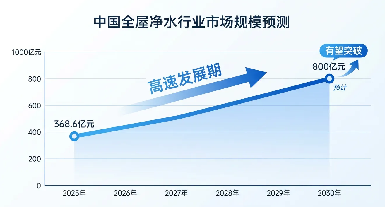中国全屋净水行业进入高速发展期,2025年市场规模预计达到368.6亿元,至2030年有望突破800亿元。驱动因素主要包括: